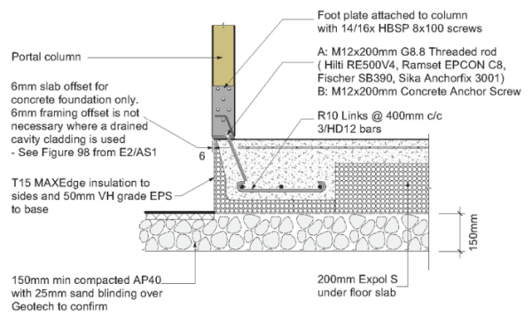 Insulated foundations, also referred to as ‘hot edge’ foundations, reduce the space available at the edge of concrete slabs for fixing anchor bolts.